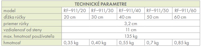 Rúčka pomáha držať rovnováhu a premiestňovať sa osobám s obmedzenými pohybovými schopnosťami, zväčšuje bezpečnosť osôb pri používaní sanitárnych zariadení, vhodná na montáž v kúpeľniach. Rúčka je určená
