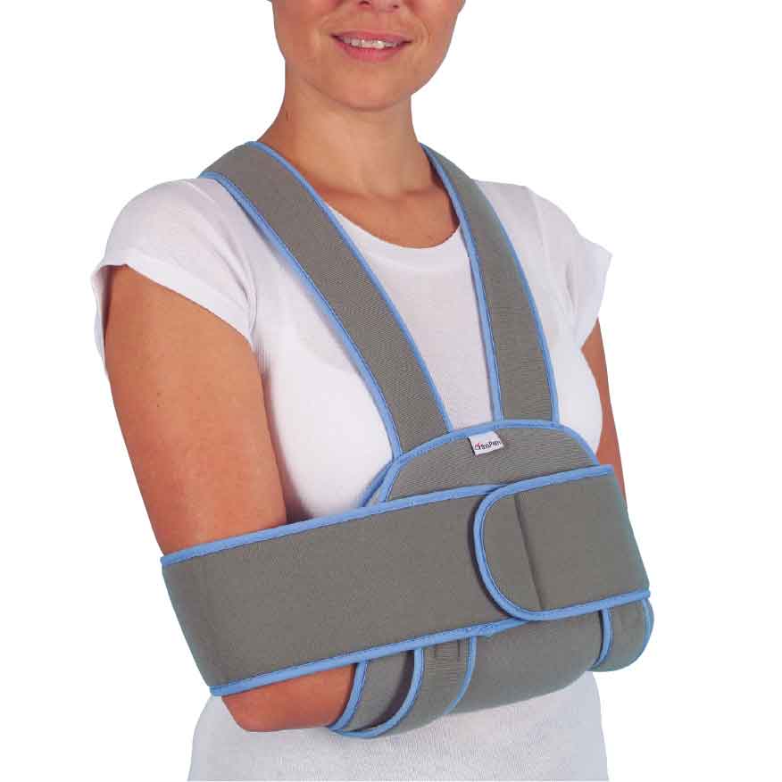 Vyrobené z vysoko kvalitného a priedušného materiálu, ktorý poskytuje vysokú úroveň podpory a pohodlia pri nosení. Ramenný imobilizér má ramenné popruhy, ktoré sú prekrížené vzadu, aby sa zvýšila úroveň pohodlia pri nosení a zvýšila úroveň ramennej opierky, ktorá pomáha procesu hojenia. Navrhnuté s pásom, ktorý poskytuje ďalšiu imobilizáciu a optimálnu podporu ramien. Sivá farba s bledomodrým lemom.