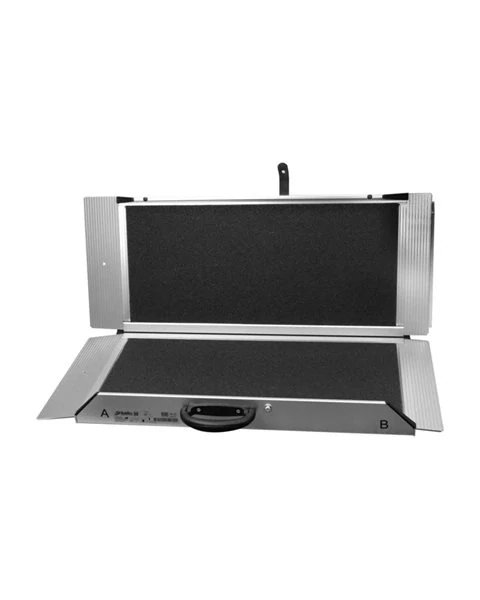 Rampa je vyrobená z hliníka s vrúbkovaným povrchom a je sklopná v pozdĺžnom smere - tzv. plochá rampa. To ponúka možnosť, aby človek mohol stáť na rampe spolu s invalidným vozíkom a používateľom. Rampa je vybavená rukoväťou na prenášanie a v strede je sklopná. Je prenosná ako kufor.